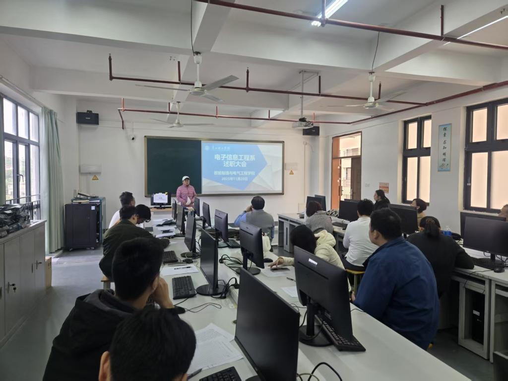 为紧扣学校合格评估核心要求,以述职强担当、以总结促提升,11月20日上午,电子信息工程系在工程楼505B有序开展全系教师述职工作。唐院长全程参与、悉心指导,与全体教师共同复盘工作、研判不足、谋划未来,让本次述职成为凝聚发展共识、夯实评估基础、推动系部与教师协同成长的关键契机。