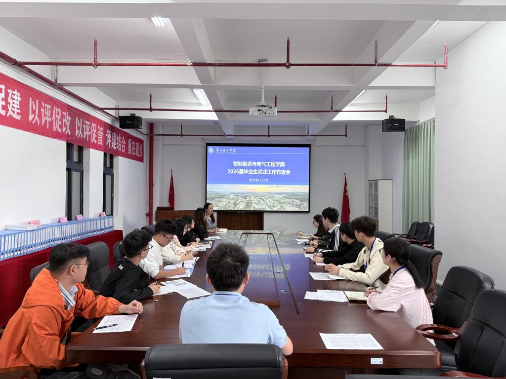 为扎实推进2026届毕业生就业工作,提升学生就业竞争力,11月5日,智能制造与电气工程学院召开2026届毕业生就业工作推进会。学院党总支书记吕在艳以及全体毕业班辅导员参加会议。