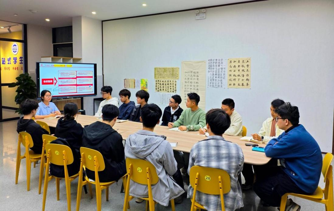 10月23日晚,智电学院学生党支部联合学生第九社区召开“学深悟透党的二十届四中全会精神——以专业担当践行青春使命”专题学习会。会议由辅导员何玉华老师主讲,13名学生党员代表参与学习。