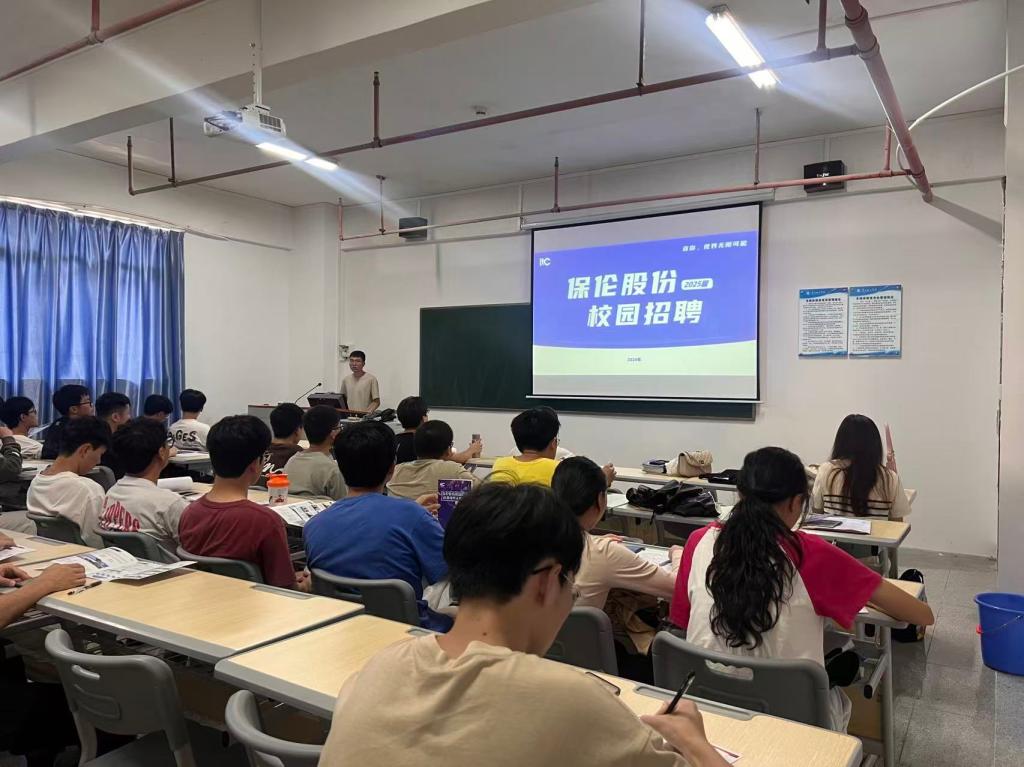 宣讲会上,广东保伦电子股份有限公司通过播放宣传视频向同学们介绍了公司的发展历程和创新文化。随后,企业校园招聘负责人详细讲解了公司目前的主要业务领域和技术优势,特别是为智慧教育、智慧信息化等多个领域提供多场景化视听解决方案。在互动环节,学生们踊跃提问,问题涵盖了职业发展、岗位要求、薪资待遇等多个方面。企业校园招聘负责人耐心解答,现场气氛热烈。