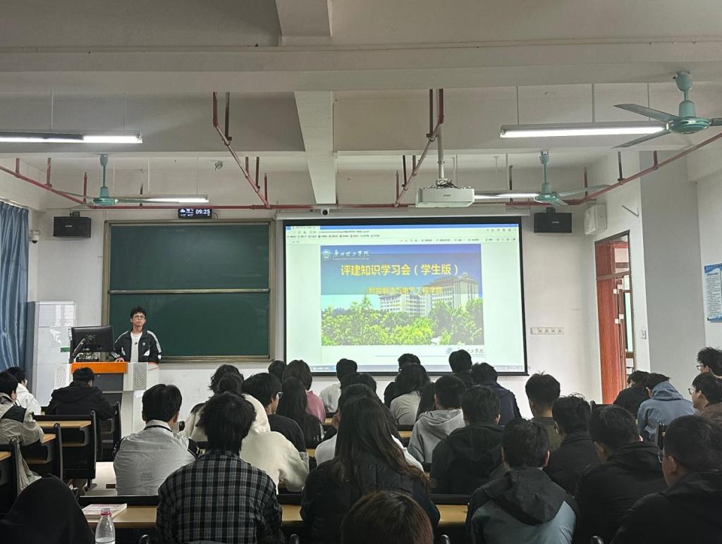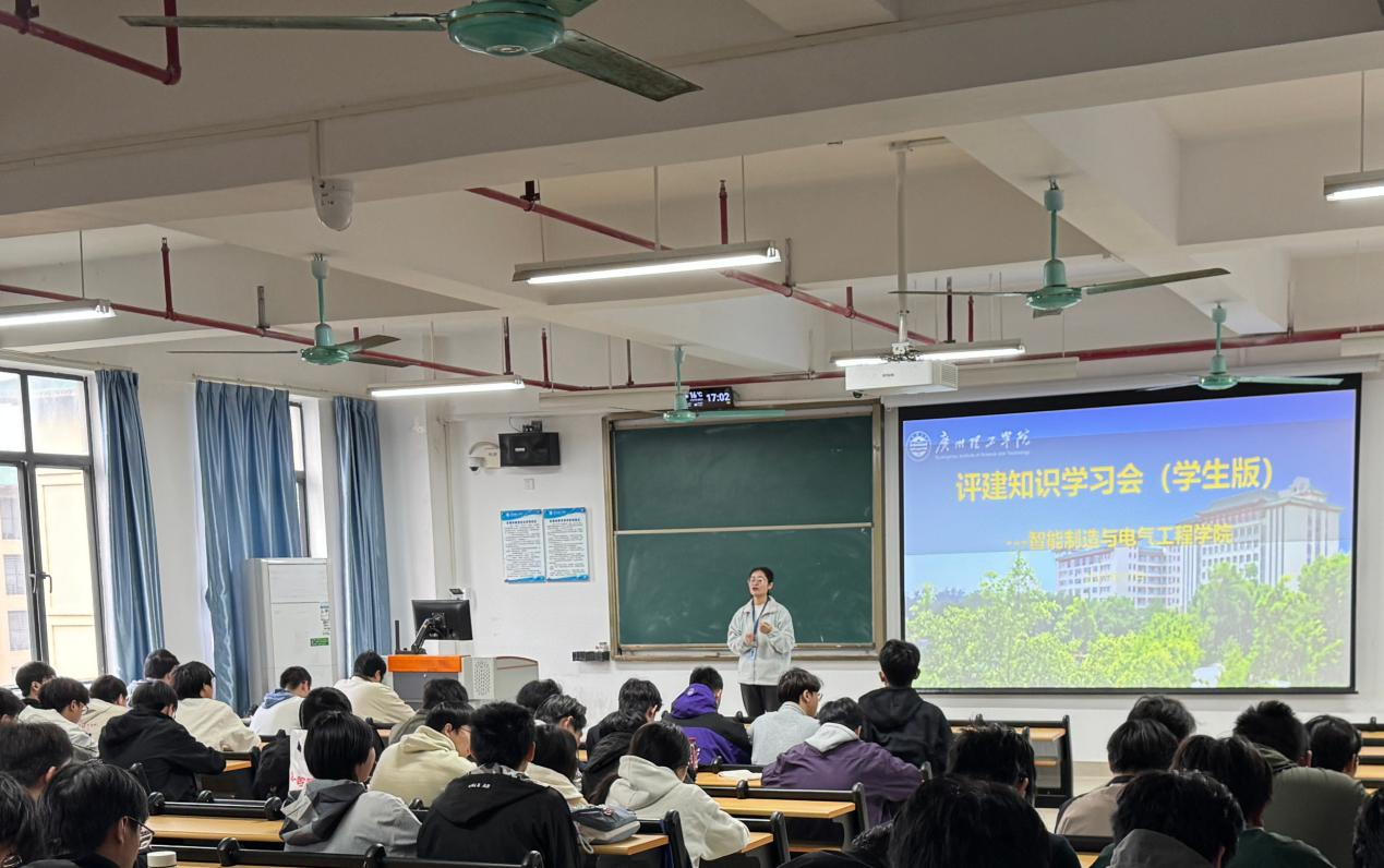 为深化学生对本科教学工作合格评估的认知,提升应对评估访谈的能力,11月18日上午,智能制造与电气工程学院组织全体学生班级在13栋教学楼开展评建知识学习会暨访谈模拟演练。此次活动通过“理论学习+实战演练”双轨模式,系统推进评建知识普及与能力提升,为2026年上半年即将到来的评估工作筑牢基础。