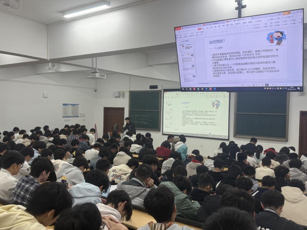 班会伊始,辅导员老师明确本次主题分为“流感科学防护”与“淘宝闪购服务解读”两大板块,结合 PPT 演示逐步展开讲解。在流感防护环节,辅导员老师们先介绍了流感的基本概念—— 这是由甲乙丙丁四型流感病毒引发的急性呼吸道传染病,传染性强、传播速度快;随后重点拆解 “个人防护要点”:外出归来需规范洗手、避免人群密集处逗留,咳嗽喷嚏需遮挡口鼻;宿舍与教室要每日通风、定期清洁,同时需保证充足睡眠与适度运动,增强自身免疫力。班长在台下同步关注同学们的反应,对重点防护措施以手势示意强化记忆。