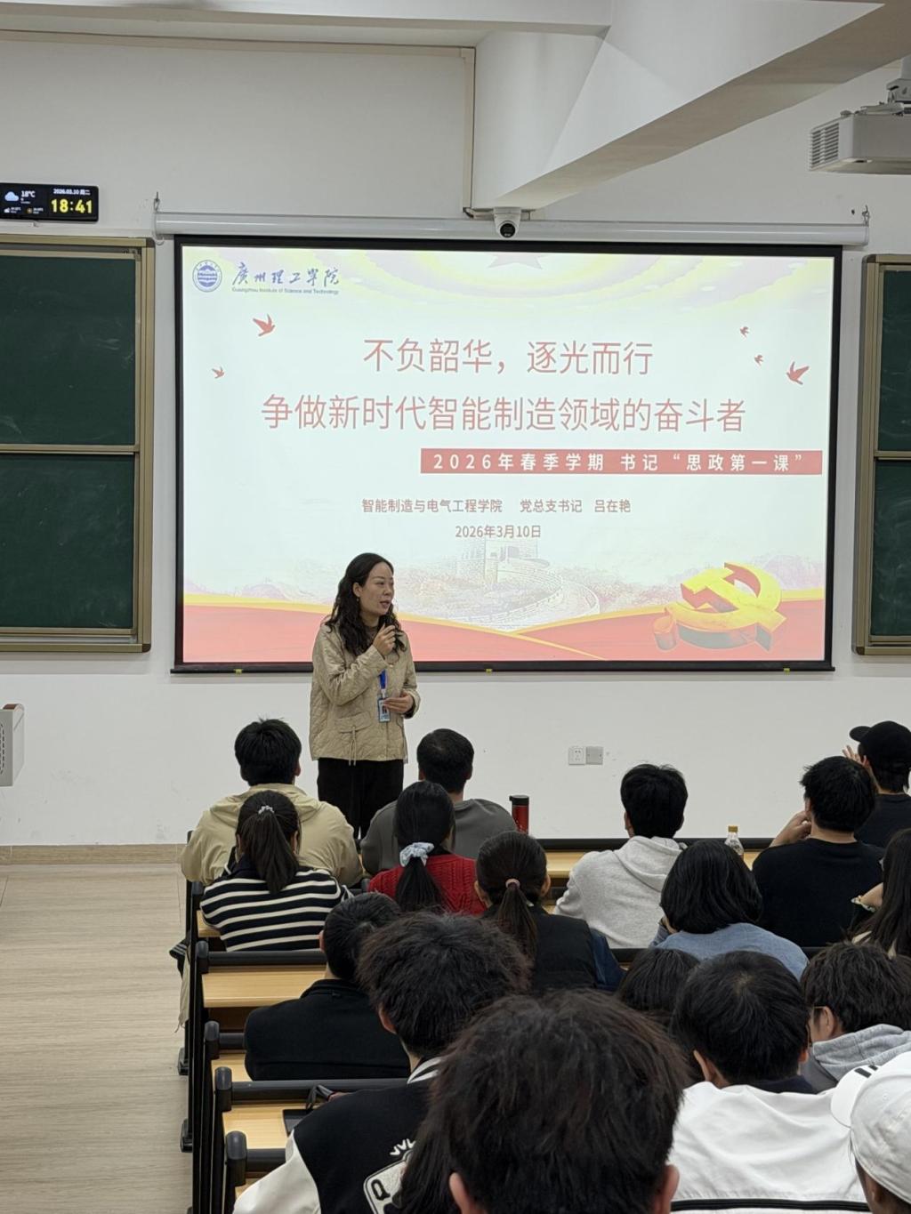 为筑牢青年学生思想根基,凝聚新学期奋进力量,3月10日,我院党总支吕书记以“不负韶华,逐光而行,争做新时代智能制造领域的奋斗者”为主题,开讲2026年春季学期“思政第一课”。惠州校区智电学院相关专业师生积极参与。