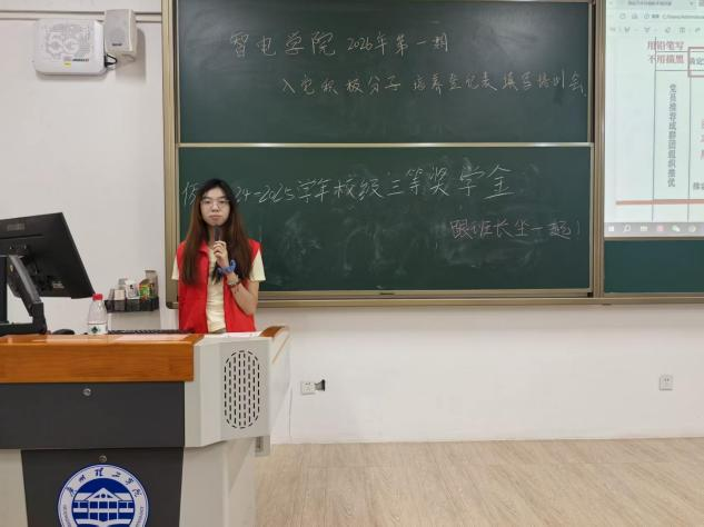 4月28日晚上,智电学院于惠州博罗校区1栋416教室开展2026年第1期入党积极分子信息填报培训会议。本次会议由党务干事黄飞主持,在惠州博罗校区的全体入党积极分子及其团支书到场参会。