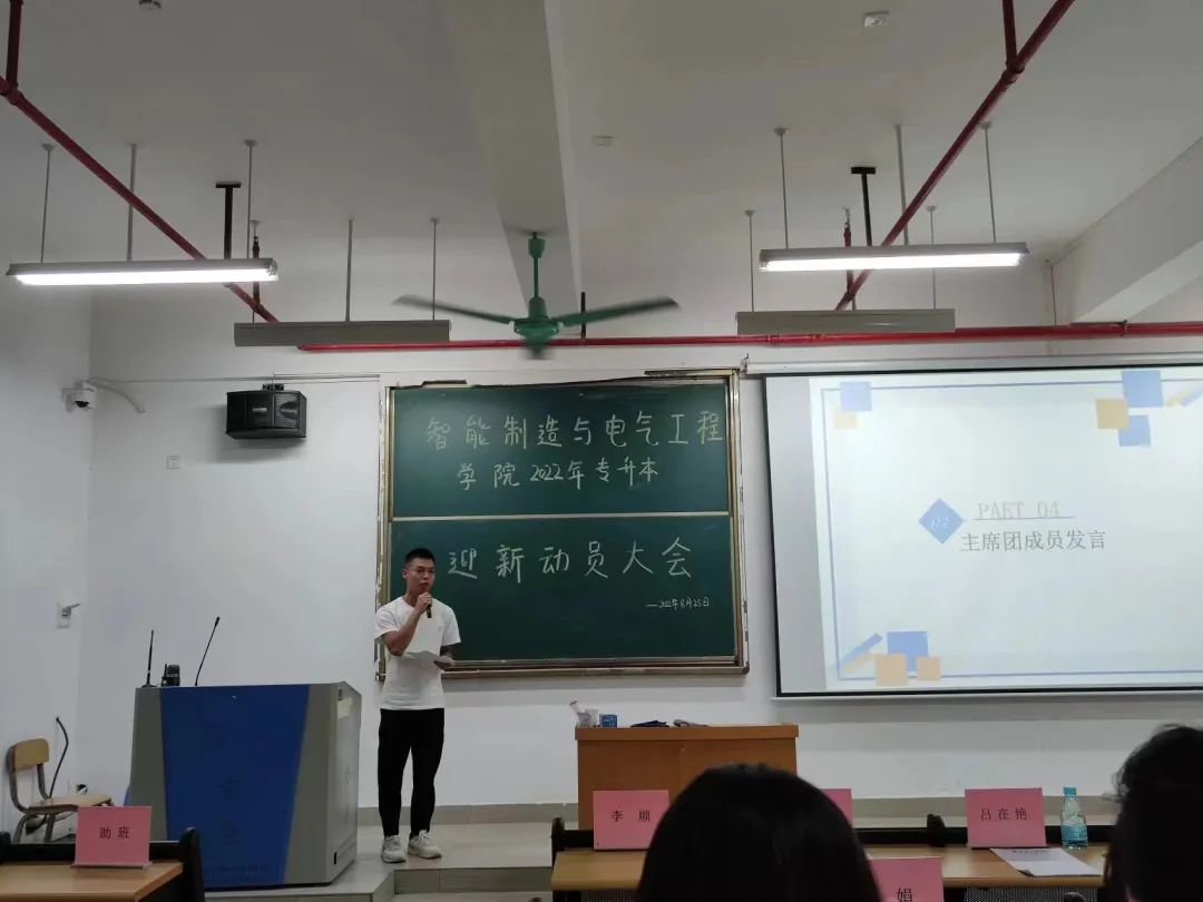 夏日的脚步渐渐远去,伴着凉爽的秋风,2022年专升本同学们即将迎来新的大学生活,为使新生更好地接触校园,更快地熟悉校园环境。智能制造与电气工程学院于2022年8月25日晚上8点,在13栋教学楼4楼401举行2022年专升本迎新动员大会。