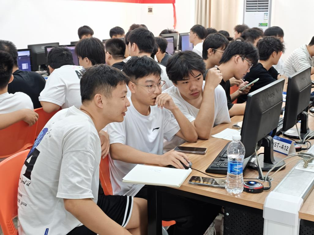 比赛现场气氛热烈、秩序井然。各参赛队伍全情投入,在紧张而高效的竞赛氛围中进行算法优化与调试。参赛队员们沉着冷静、协同合作,充分展现了扎实的专业知识储备和良好的工程实践能力。许多团队在短时间内快速定位问题、优化算法结构,不仅体现了较强的技术应用水平,也彰显了广州理工学院学生勇于探索、敢于创新的精神风貌。