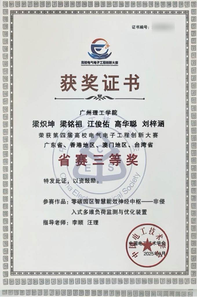 一直以来,广州理工学院始终秉持 “以赛促学、以赛促教” 的人才培养理念,通过组织参与高水平学科竞赛推动教育教学改革,助力学生将理论知识转化为实践创新能力,为电气电子领域培养高素质人才持续注入力量。