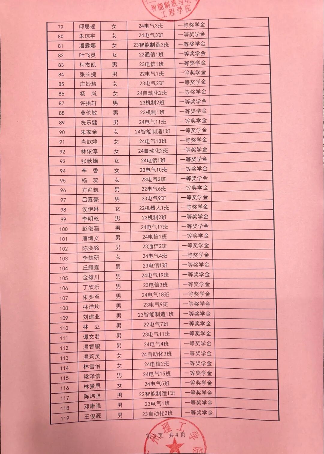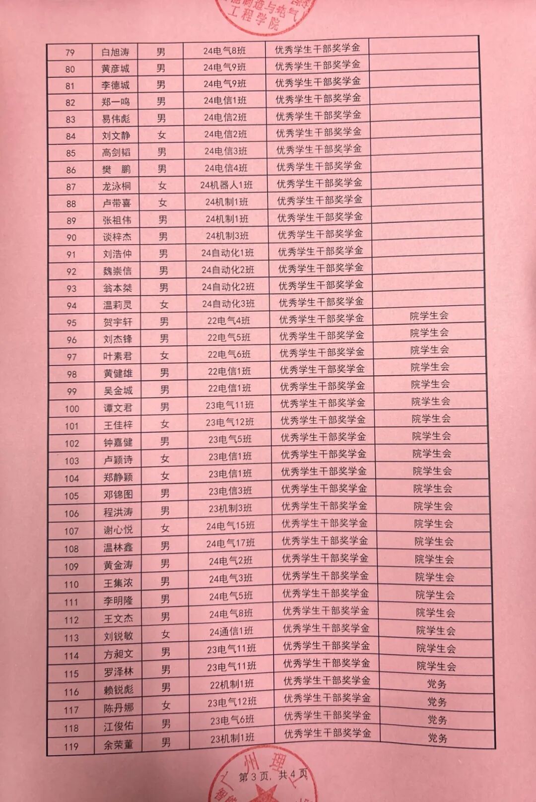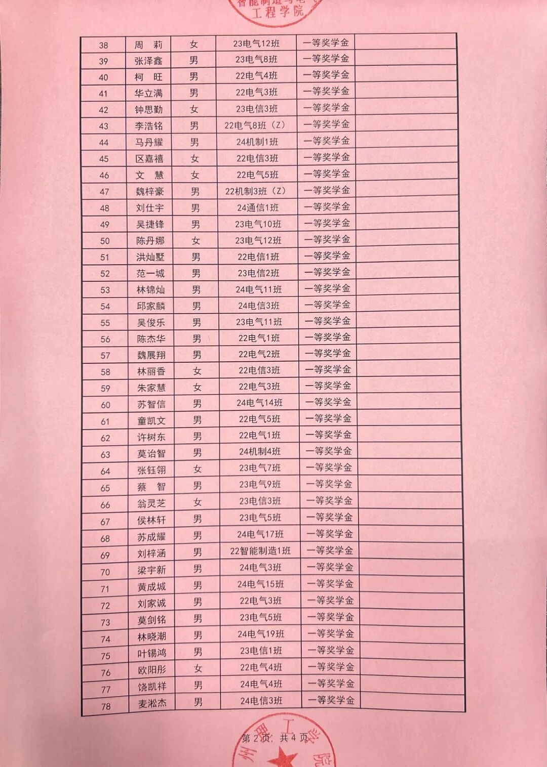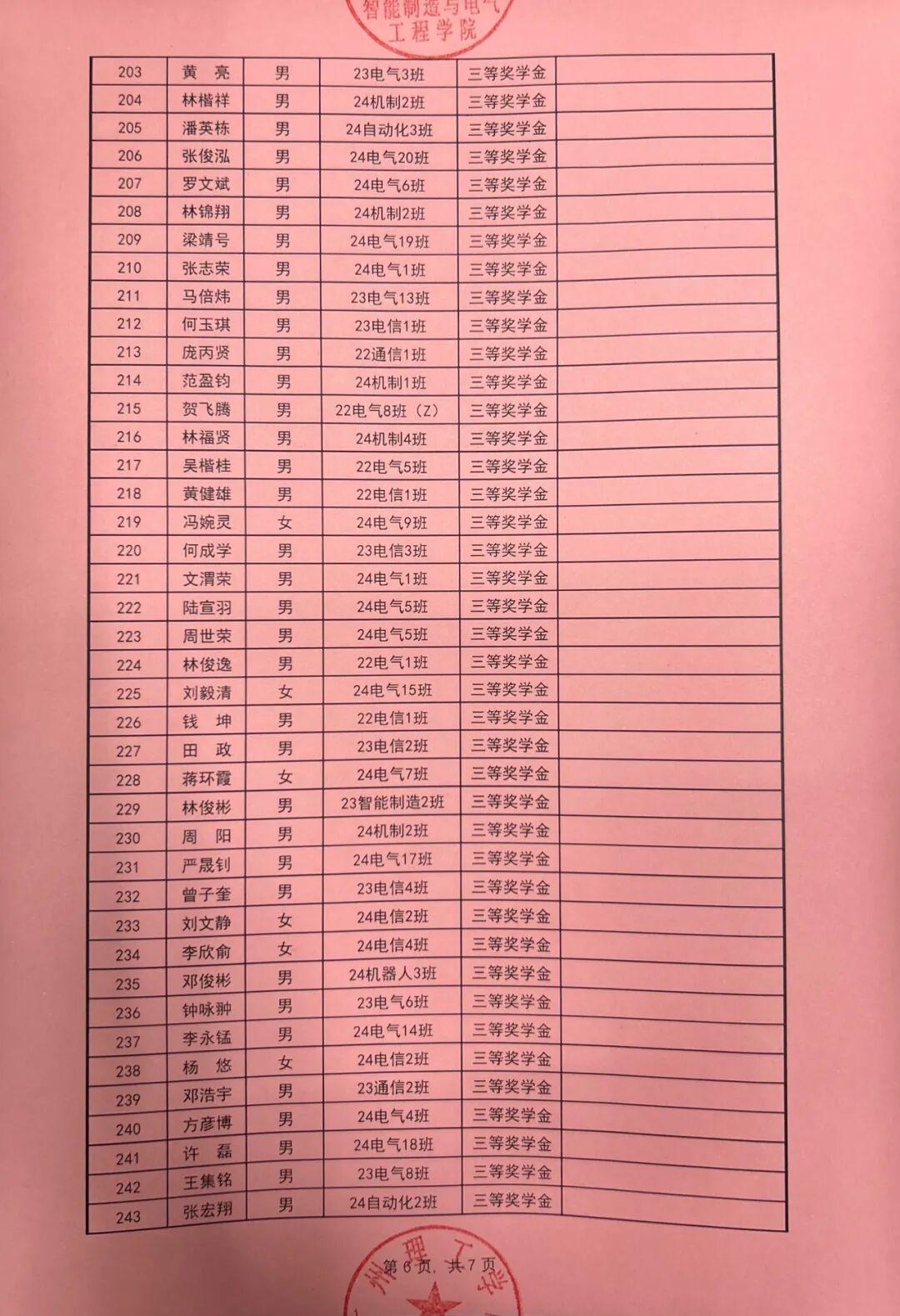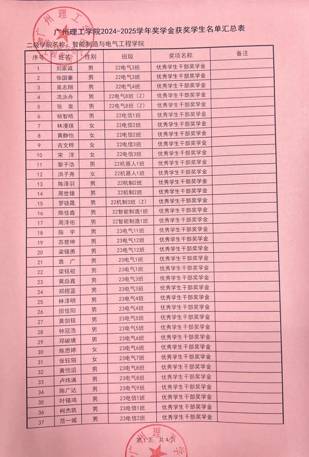 根据广州理工学院学生处关于印发《2024-2025学年奖学金评比工作方案》的通知(广州理工学函〔2025〕162号),智能制造与电气工程学院本着公平公正公开的原则对收到764份奖学金申请材料进行严格评选,现对学院2024-2025学年优秀学生奖学金拟获奖名单予以公示。公示时间从2025年9月24日至2025年9月26日。