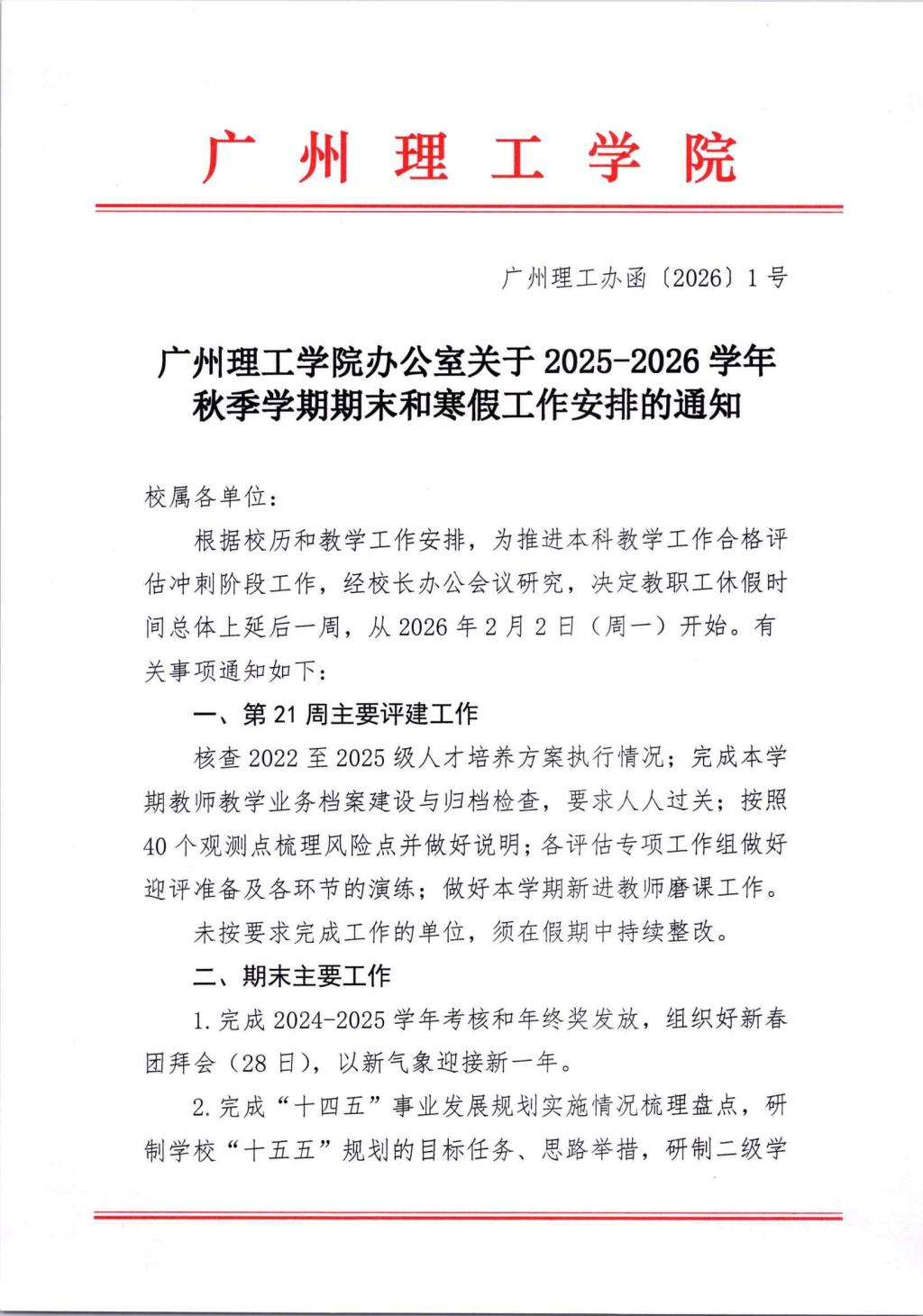 关于2025-2026学年秋季学期期末和寒假工作安排的通知