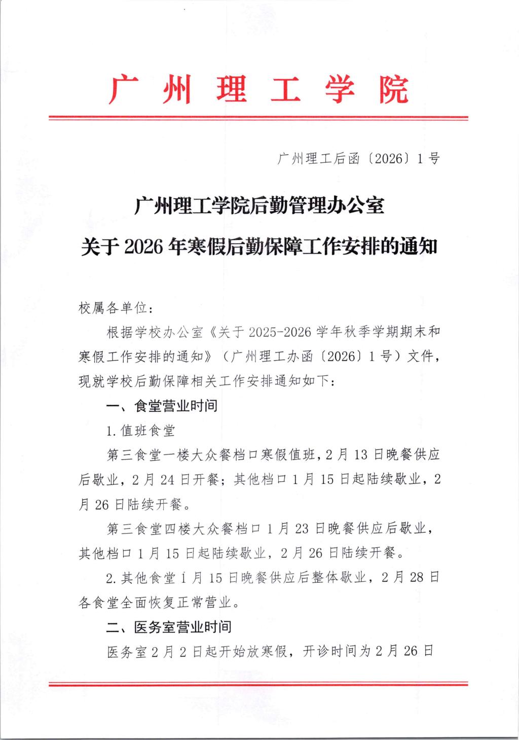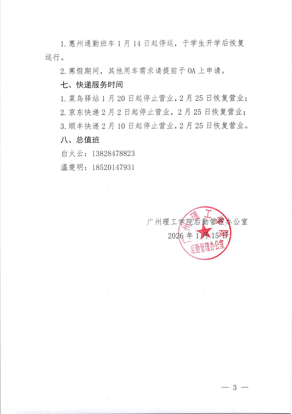 广州理工学院后勤管理办公室关于2026年寒假后勤保障工作安排的通知