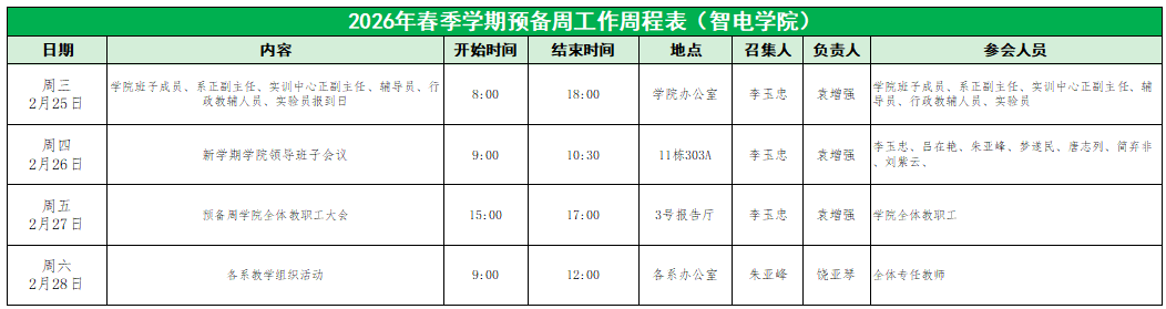 智电学院2026年春季学期预备周工作周程表