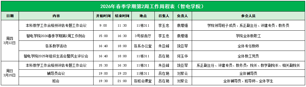 智电学院2026年春季学期第二周工作周程表