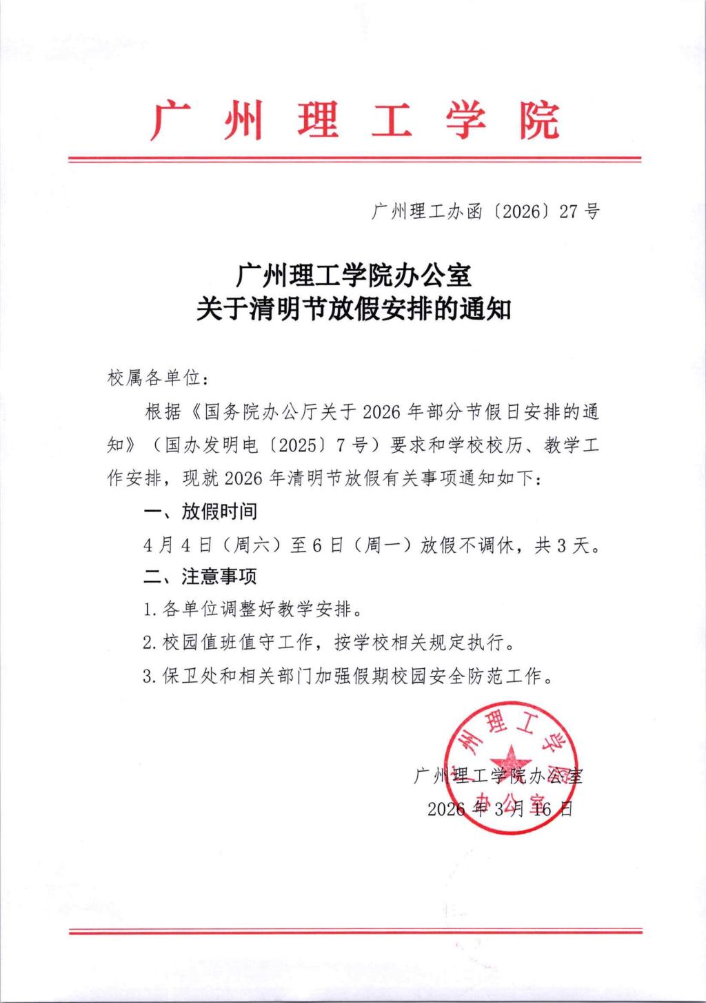 关于清明节放假安排的通知