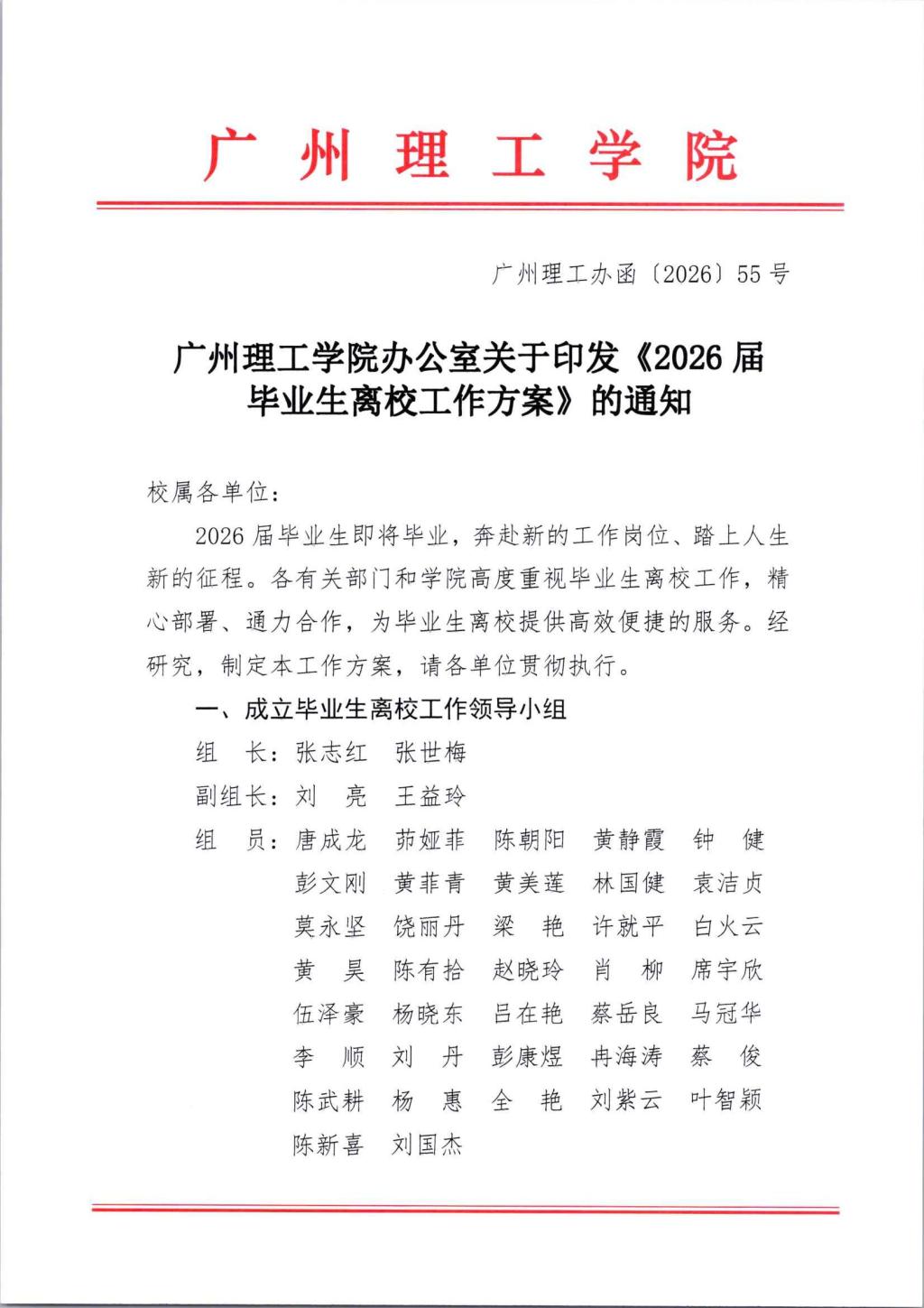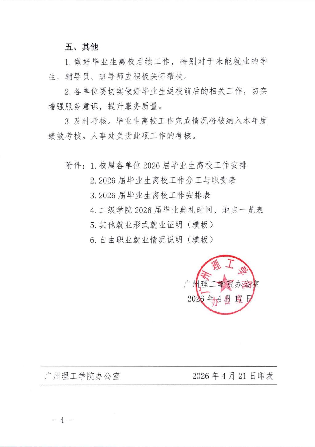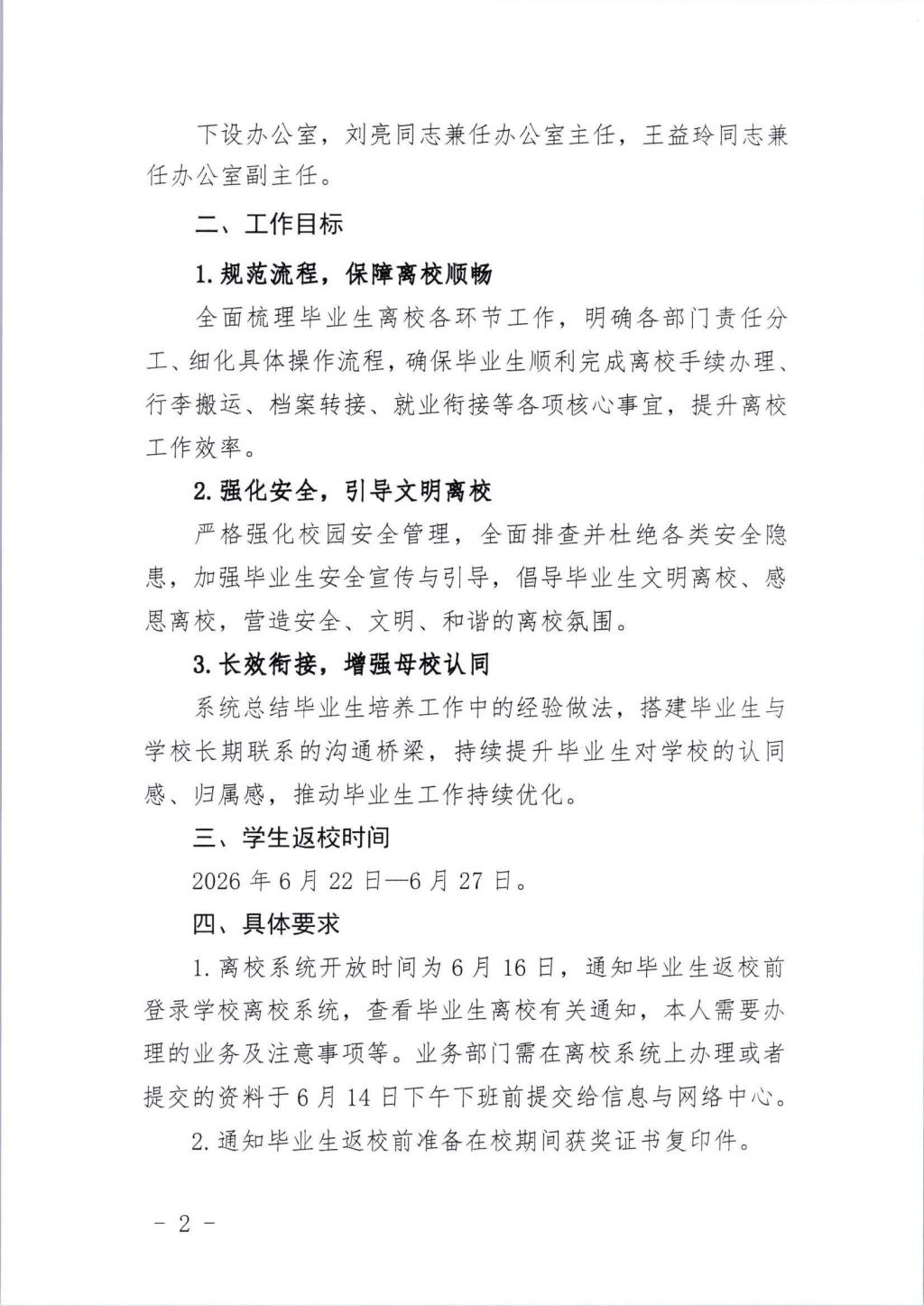 关于印发《2026届毕业生离校工作方案》的通知