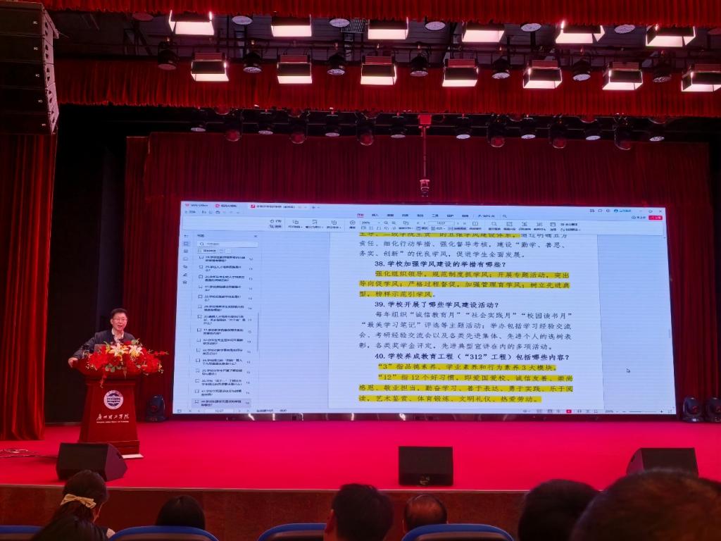 聚焦学风建设合力,服务学生成长成才。围绕学风建设,与会教师认真学习了学校构建的“学生主体、班干部引领、辅导员主抓、教师课堂主导、二级学院主责”五维学风建设体系,以及“四航”育人工作思路、“四个一”工程、“312”养成教育工程等具体举措。学以致用,重在行动。优良学风是人才培养质量的重要保障,作为专任教师,要切实发挥课堂主导作用,将价值引领、知识传授与能力培养有机结合,与学工队伍形成育人合力,共同营造“勤学、善思、务实、创新”的浓厚学风。
