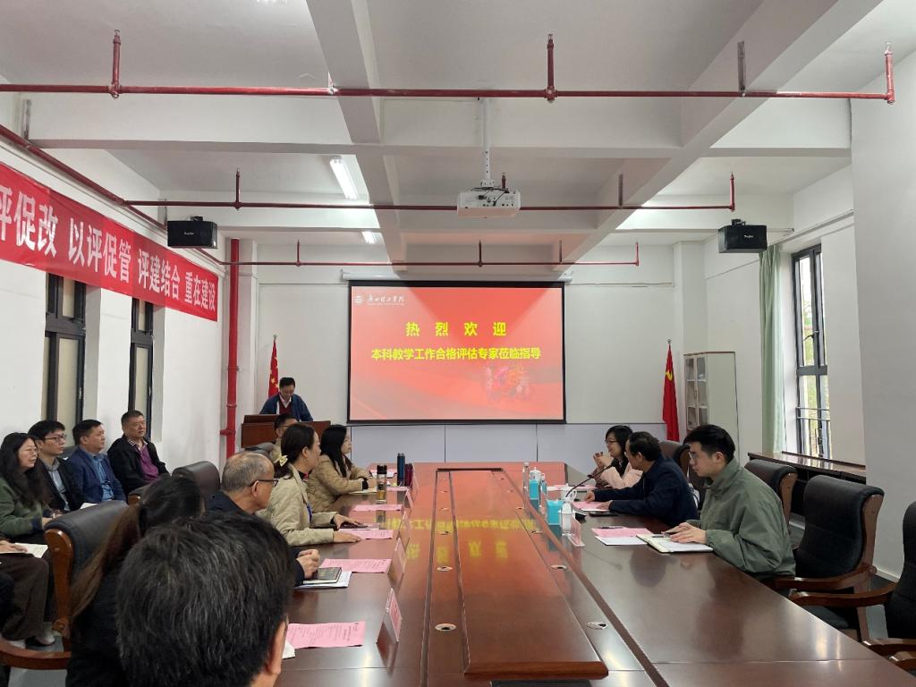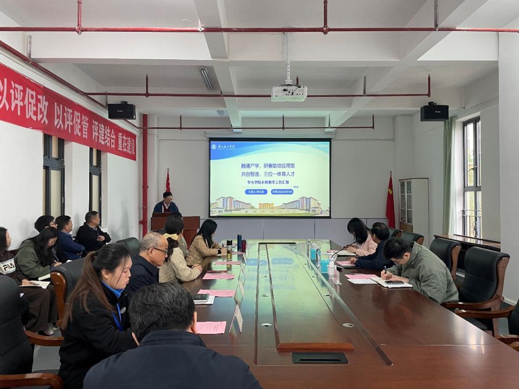 院长说院情,系统梳理办学成效。李玉忠院长结合学院本科教学工作汇报,从学院概况、育人思路、举措与成效、特色与亮点、问题与改进五个方面,系统介绍了学院评建工作的整体推进情况。他重点阐述了学院“融通产学,研赛助培,共创智造,三位一体育人才”的应用型人才培养模式,展示了学院在省级重点学科、省级工程技术研究中心、省级产业学院、省级教学成果奖等方面取得的成效,介绍了学院以工作室为载体、以学科竞赛为抓手、以科研反哺教学为特色的育人实践。同时,他也客观分析了当前师资结构、生师比等方面存在的问题,并提出下一步改进举措。