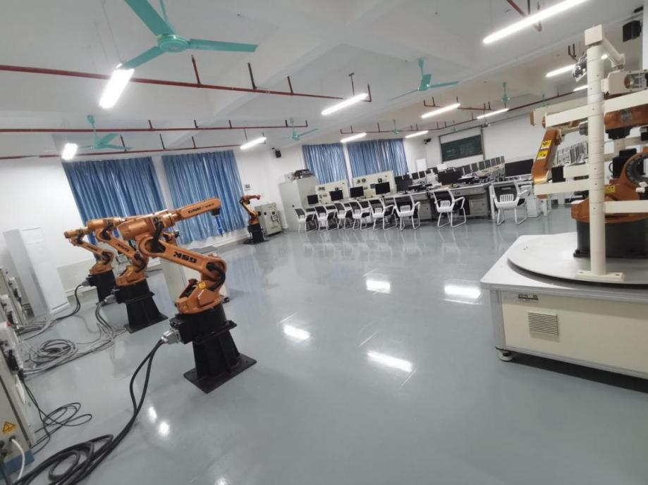 本实验室以多种常用工业机器人为主、包含多种智能机器人和实用教学机器人装置,囊括了ABB、KUKA(库卡)、FANUC(发那科)、YASKAWA(安川)四大家族机器人以及国产的广数机器人,以满足机器人的学科建设、培训考证和实践教学。此外,研发了四轴机器人等多种产品以及一批机器人专利技术转让,获得了较好的经济效益。